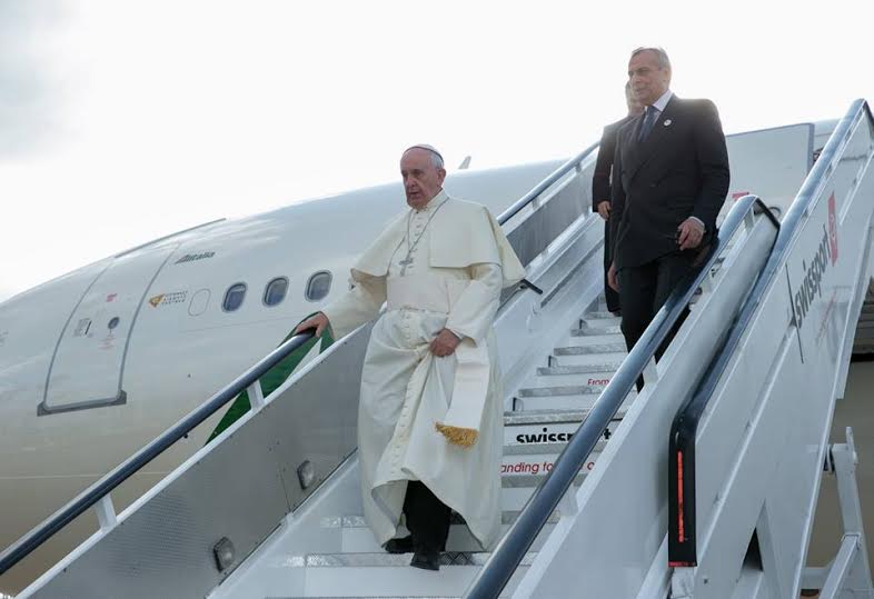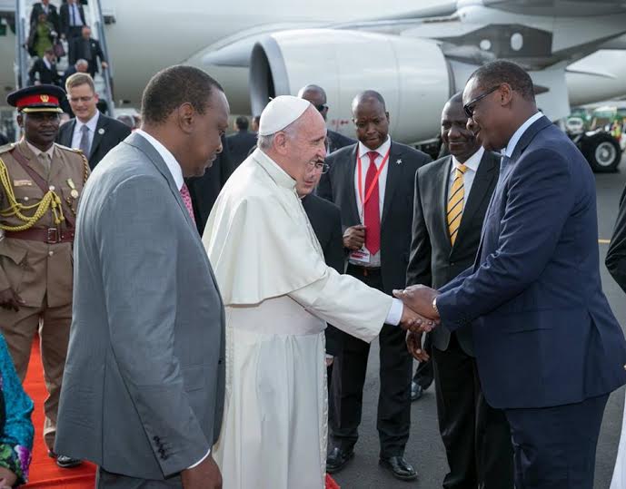 Pope Francis arrived Kenya for his state visit this afternoon and was received by Kenyan president Uhuru Kenyatta, his wife, Reverend Fathers and other top government functionaries. See more photos below…