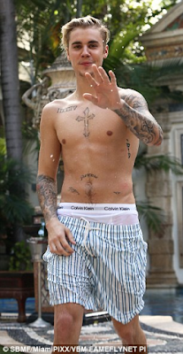 The singer showed off his toned body yesterday after taking a dip at the Versace Mansion in Miami where he’s taking a break. More photos
