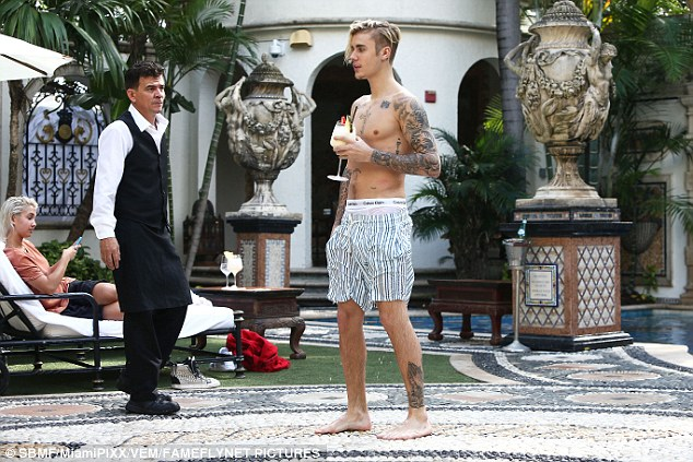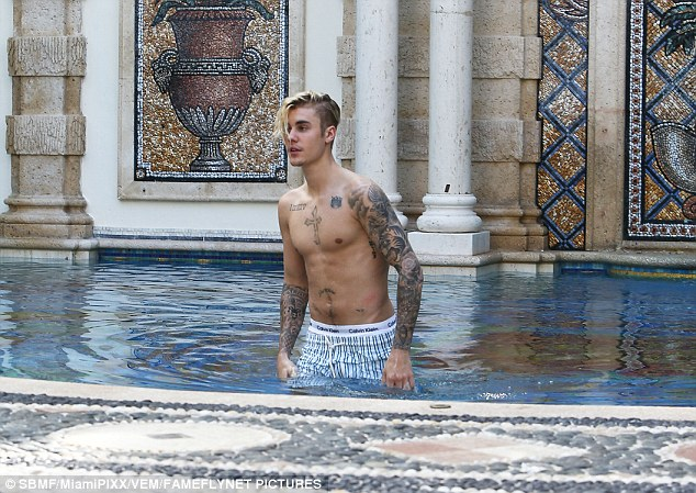 The singer showed off his toned body yesterday after taking a dip at the Versace Mansion in Miami where he’s taking a break. More photos