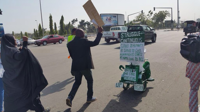 The protest which took-off from the Unity Fountain, Maitama, Abuja, was led by activists,Aisha Yesufu, Anthony Ehilebo, Ariyo Atoye and Mukhtar Dan’Iyan,