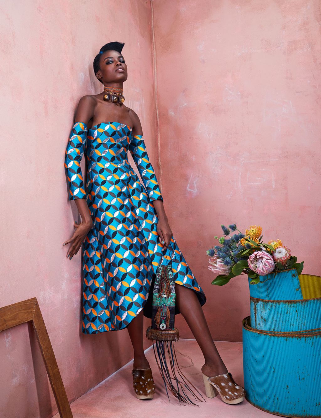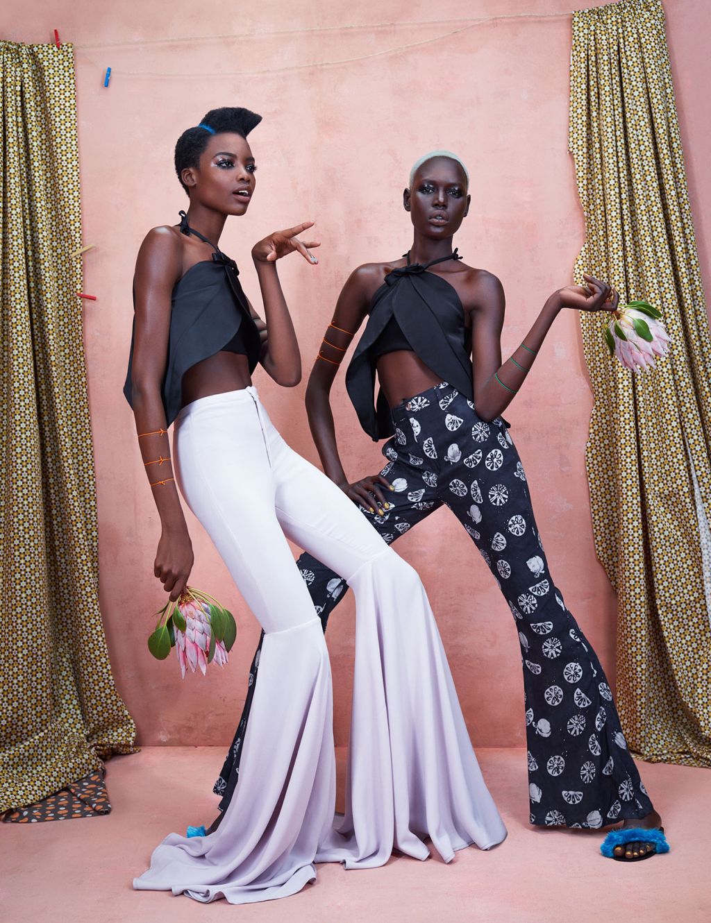 On Ajak – Couture Wrap: Nkwo, Top: Sophie Zinga, Choker: Needle and Thraed | On Maria – Top: Loza Maleombho, Choker: Needle and Thread