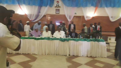 President Buhari is currently in a meeting with the parents of the missing Chibok girls. The press has been asked to exit the hall, and all recording gadgets switched off. Continue for more photos…