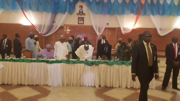 President Buhari is currently in a meeting with the parents of the missing Chibok girls. The press has been asked to exit the hall, and all recording gadgets switched off. Continue for more photos…