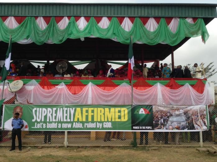 Abia state governor, Okezie Ikpeazu is currently holding a thanksgiving service at the Umuahia Township Stadium over the vaidation of his election by the Supreme court on Feberuary 3rd.