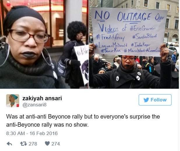 But on Tuesday, only a handful of protesters turned up for anti-Beyonce rally outside American Football’s New York headquarters.