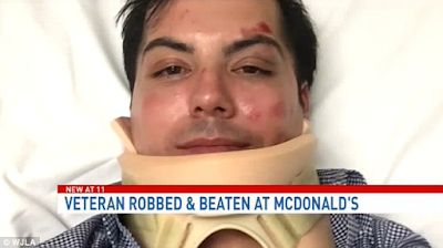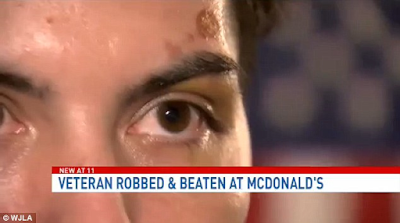 ‘As soon as I walked out of the McDonald’s I got hit in the back of the head, or the side of the head,’ he told WJLA. ‘I just dropped to the ground, and [the McDonald’s manager] says I looked unconscious.’