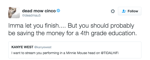 Kanye West and TIDAL artist DJ Deadamu5, battled each other on Twitter last night. After reading the back and forth after the cut…biko, tell us who won…lol.