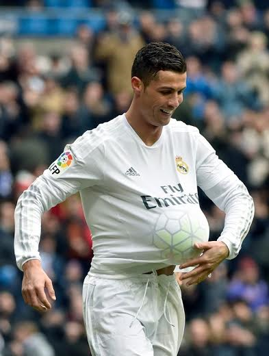 Popular Portuguese tabloid Correio da Manha have claimed that Cristiano Ronaldo’s goal celebration against Celta Vigo is a sure sign that the Real Madrid star is expecting a second child from a surrogate mother. The Portuguese captain stuffed the ball inside his jersey following one of his four goals in Real Madrid’s 7-1 win at the Santiago Benabeu during the weekend.