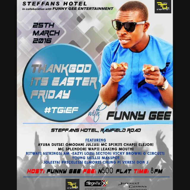 The show will be featuring artists like Julius, veres, Don J, Lois, Omodan, Chapi, Elejor, leaking mouth, MC Spirit… etc. And Funny Gee himself!