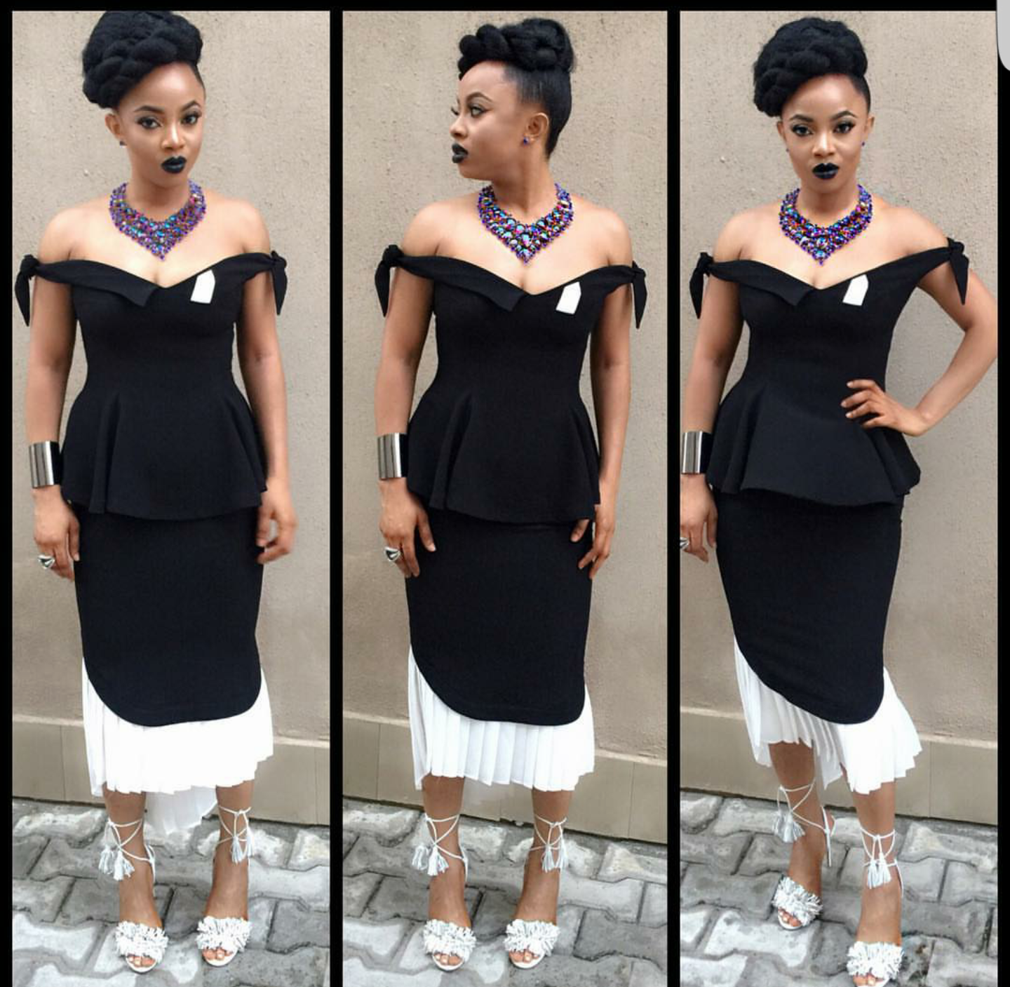 Our Nigerian Sex consultant youtuber! By the name Toke Makinwa aka talk talk lol… Has never looked so black gorg! With a fore head for days, we are totally loving this look. It is very hard to wear head to toe black without looking like you are just coming from a funeral, but the black lipstick totally changed everything for the look, it gave it that avant garde feeling, the dress was lacking.