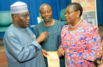 Former Vice President and chairman of the occasion, Atiku Abubakar, Chido Onumah, author and Dr (Mrs) Oby Ezekwesili were all present at the public presentation of “We are all Biafrans” written by Chido Onumah at Yar’Adua Centre, Abuja on Tuesday, 31-05-2016. Also in attendance were Environmental rights activist, Nnimmo Bassey, Tope Fasua, DG Shehu Yar’Adua Centre and Ms Jackie Farris. Another photo after the cut…