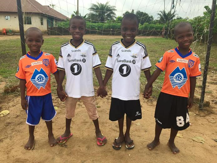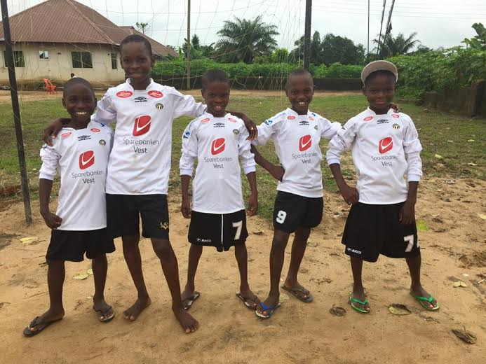 Through football children explore and invent. They develop social skills and learn to express their emotions. Football is also a tool we use for our children in the process of working with their trouble past. And now we are so lucky to receive so many football shirts ! The children, staff, David Emmanuel Umem and I are so grateful for this amazing gift! Thank you Bjørn and thank you to all the football clubs and players. We are forever grateful”