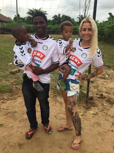 Danish aid worker, Anja Rinngren Loven took to her official Facebook page to share photos of Hope and other children at DINN /ACAEDF Childrens Home in Akwa Ibom, all clad in signed football shirts donated by various individuals including a Norway police officer, professional football players around the world and European football clubs. Read the post after the cut.