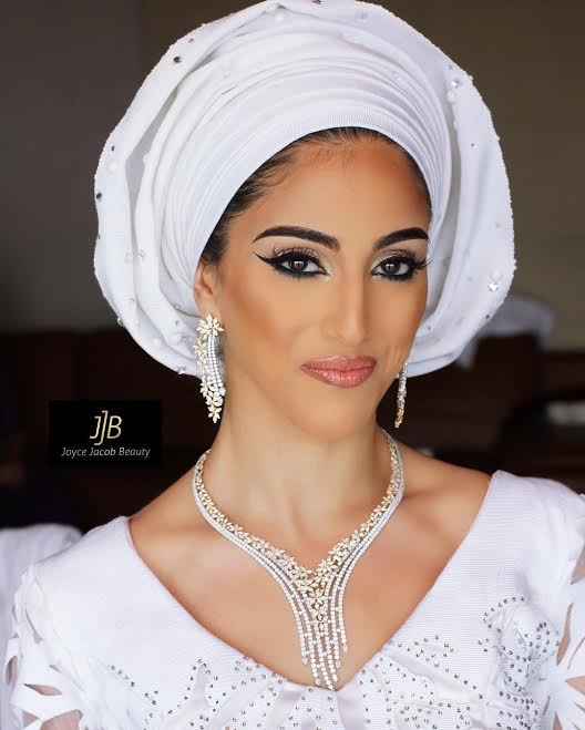 One of Nigeria’s richest women, Folorunsho Alakija’s son, Folarin, got married to his beautiful Iranian bride, Naza, in a lavish ceremony in Lagos this past weekend. MUA Joyce Jacob shared this stunning new photo above